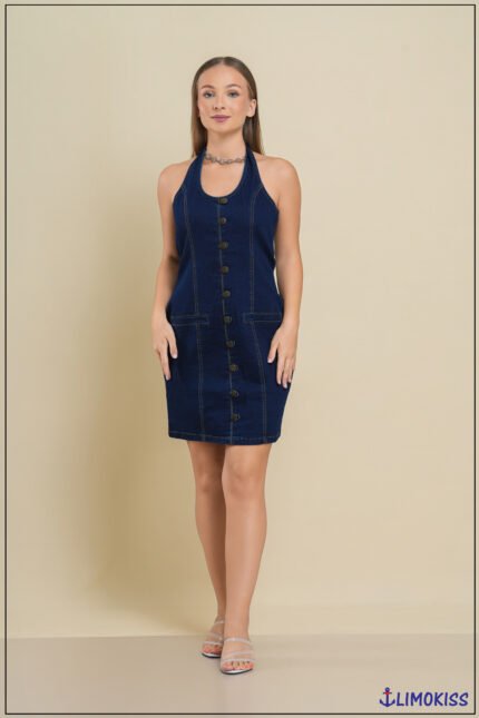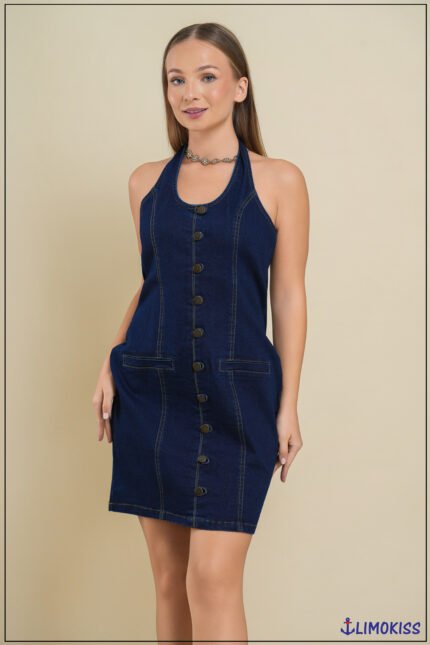 Turn heads with the Denim Halter Button Dress — a versatile piece that blends comfort with effortless style. Made from soft, durable denim, this sleeveless dress features a flattering halter neckline and a full button-down front for a modern touch. The front pockets add a hint of casual charm while keeping it practical. Perfect for day outings, casual gatherings, or weekend wear, this dress pairs beautifully with sandals, sneakers, or layered accessories for your own signature look.