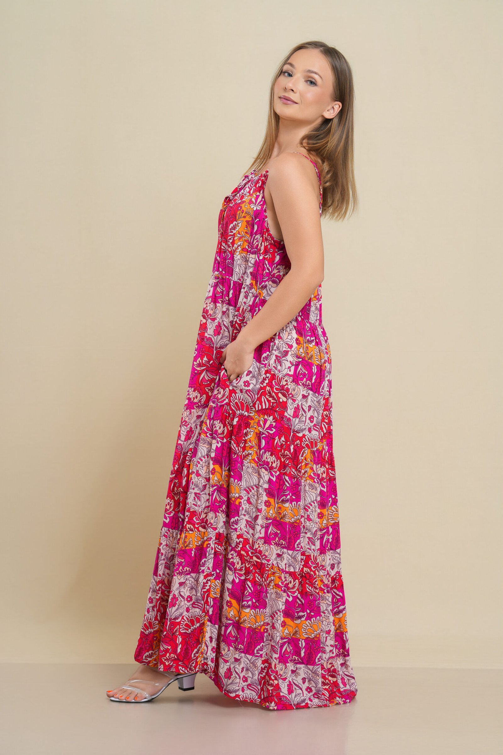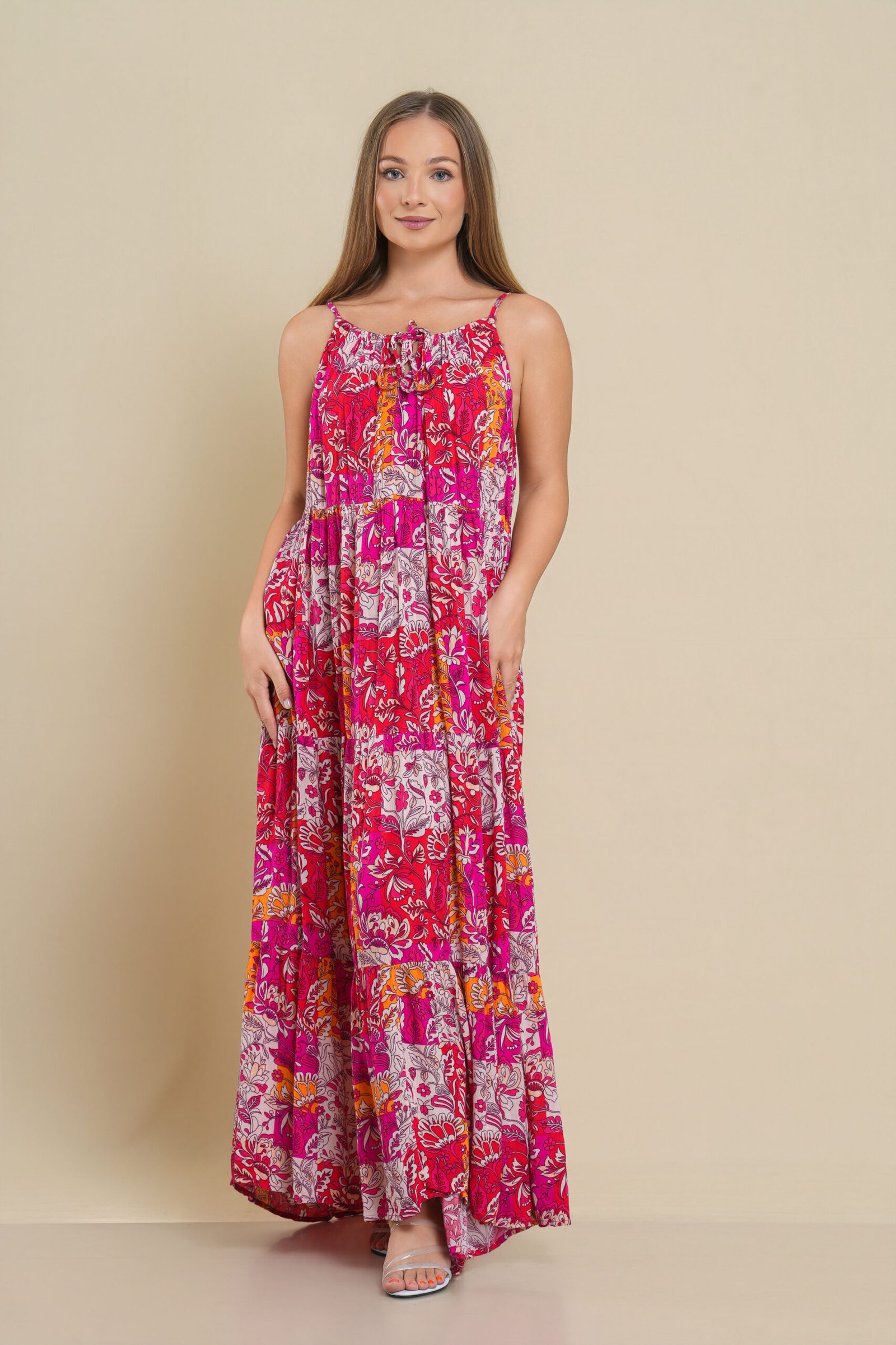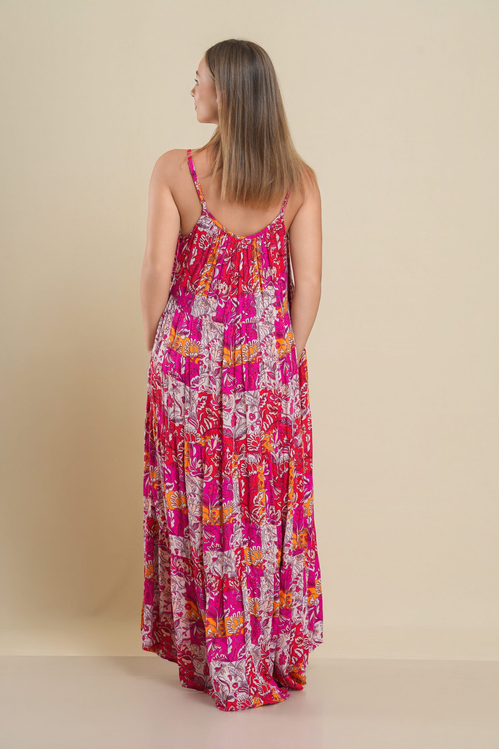 Brighten up your wardrobe with this Printed Maxi Dress — a flowy and feminine piece that’s perfect for any casual day or beach outing. Designed with adjustable thin straps and a relaxed fit, it offers maximum comfort without compromising on style. The vibrant floral-inspired print makes it a standout choice, while the lightweight fabric keeps it cool and breathable. Pair it with sandals for a laid-back look or dress it up with accessories for a chic evening vibe.