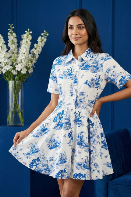 Primary Keyword: Toile Print Cotton Shirt Dress