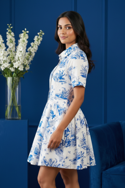 Our Toile Print Cotton Shirt Dress features the iconic Toile de Jouy pattern, a style that has symbolized luxury since the 18th century. The intricate blue scenes set against a crisp white background evoke a sense of “Old Money” elegance. At Limokiss, we believe that fashion should be timeless. While trends fade, the classic aesthetic of this toile print ensures that your investment remains relevant season after season.